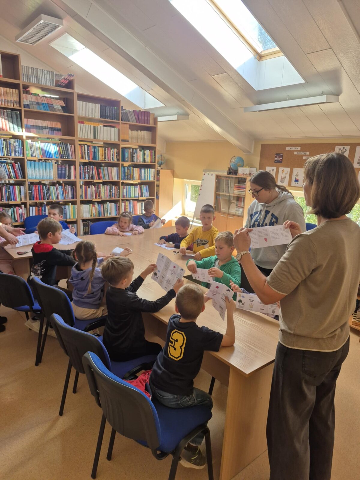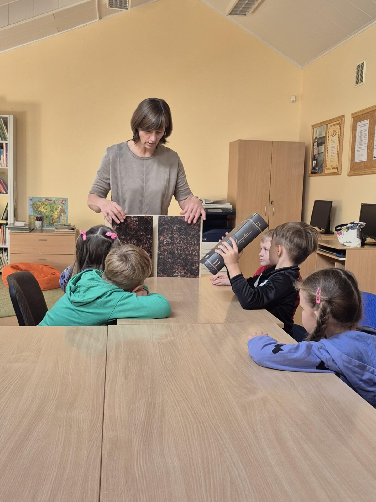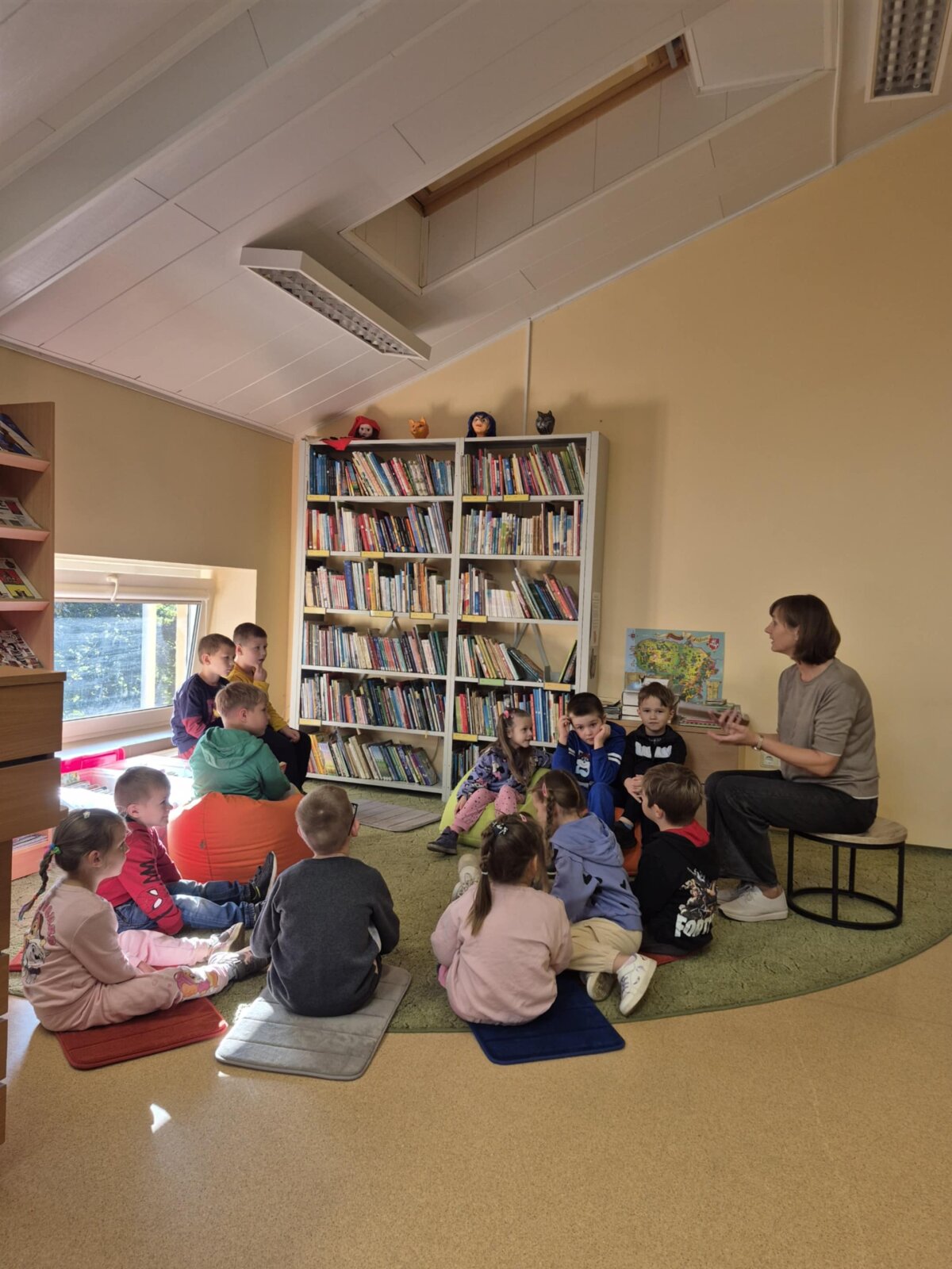 Vaikai smalsiai vartė knygeles, klausėsi pasakojimų, žiūrėjo filmuką „Batuotas katinas“ , pasigamino mažas knygutes. Viešnagės pabaigoje bibliotekininkė visus pradžiugino dovanodama knygų skirtukus.