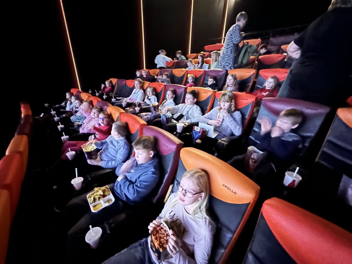 Kino salėje mokiniai žiūrėjo filmą „Kaip peliukai Kalėdas griovė". Ekrane netrūko linksmų nuotykių, o salėje – juoko, smalsių reakcijų ir nuoširdžių emocijų. Po seanso vaikai dar ilgai aptarinėjo įsimintiniausias scenas, dalijosi mėgstamiausiais herojais ir smagiomis filmo akimirkomis. Toks bendras įspūdis suartina, palieka gražų prisiminimą ir primena, kad šventės pirmiausia kuriamos ne daiktais, o kartu patirtomis akimirkomis.