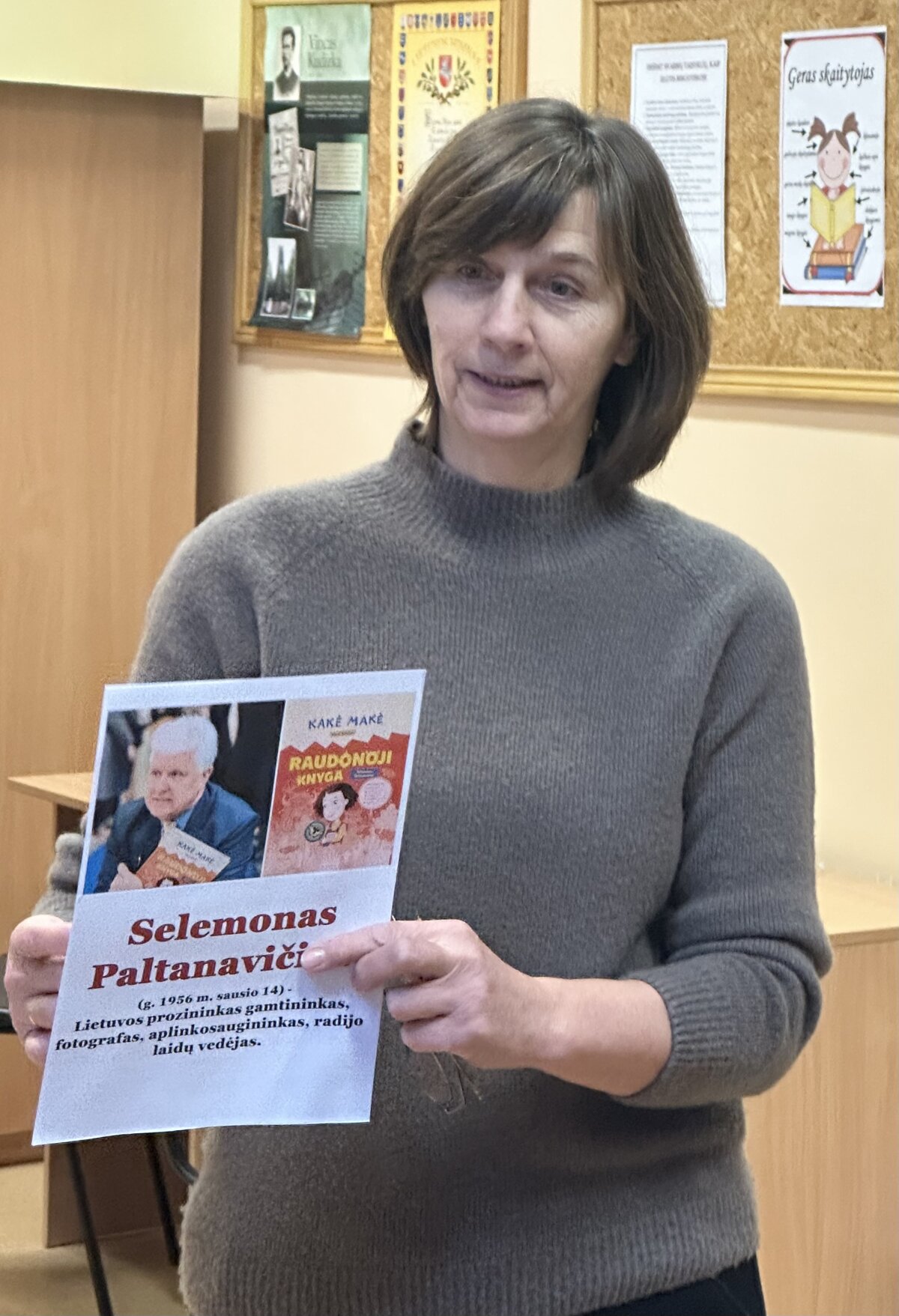 Pamoką vedė bibliotekininkė Rasuolė Rutkauskienė, kuri mokiniams pristatė Selemoną Paltanavičių – žinomą Lietuvos gamtininką, rašytoją, fotografą, aplinkosaugininką, radijo laidų vedėją ir aktyvų gamtos puoselėtoją. Mokiniai sužinojo, kad šis kūrėjas yra parašęs daugybę knygų apie gamtą vaikams ir suaugusiesiems, o šių metų sausio mėnesį jam sukako 70 metų.