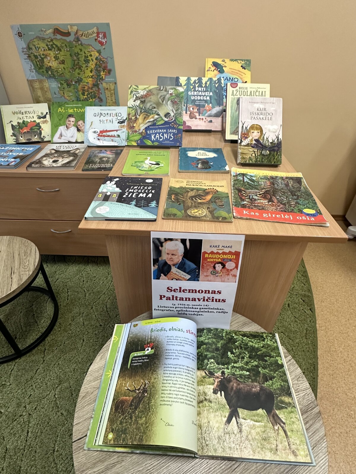 Ta proga bibliotekoje buvo parengta Selemono Paltanavičiaus knygų paroda, kuri tapo svarbia užsiėmimo dalimi. Pirmokai galėjo pavartyti knygas, apžiūrėti iliustracijas ir susipažinti su jose aprašomais Lietuvos gyvūnais bei gamtos reiškiniais.