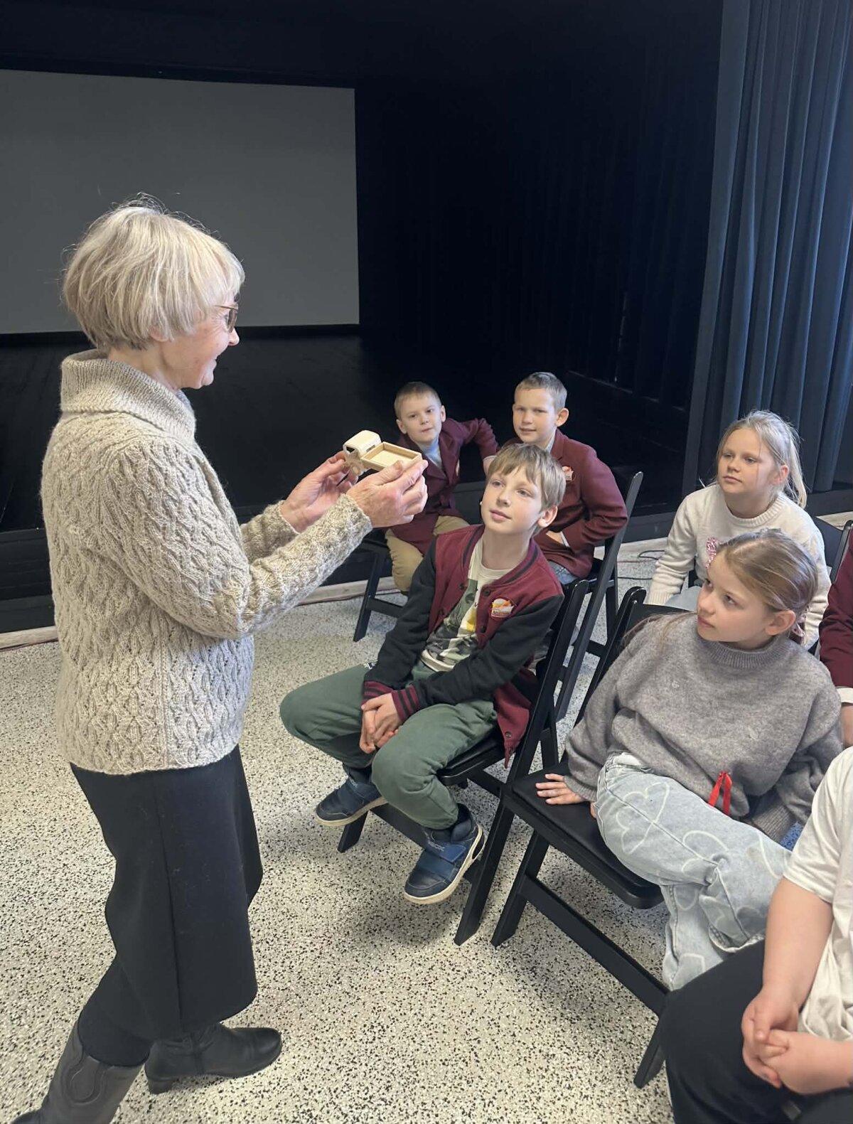 Vaikai meistrą apipylė klausimais, o svarbiausias iš jų – ar yra galimybė įsigyti šiuos eksponatus. Vėliau mokiniai galėjo darbus apžiūrėti, išbandyti ir patys pajusti jų išskirtinumą.