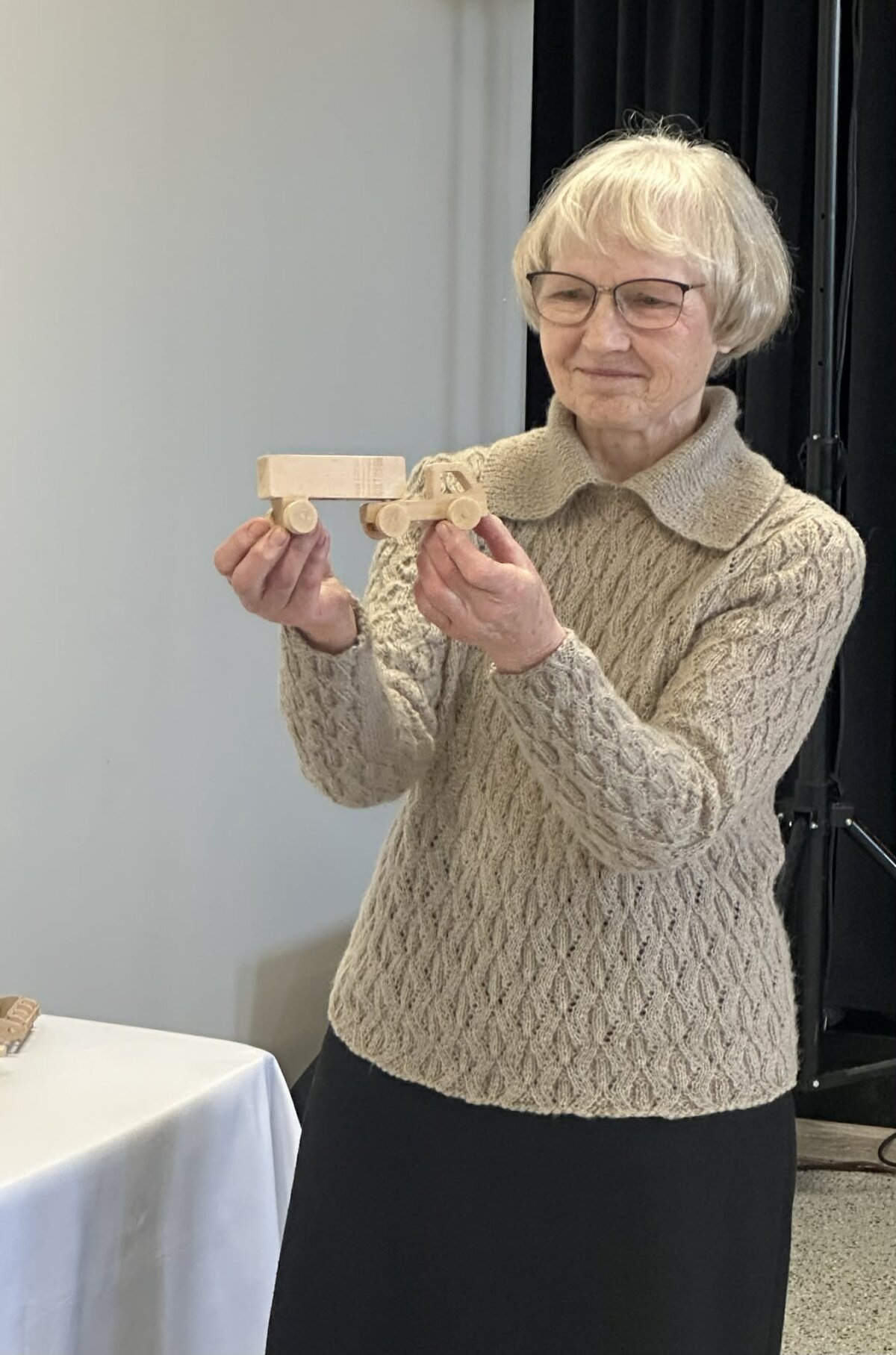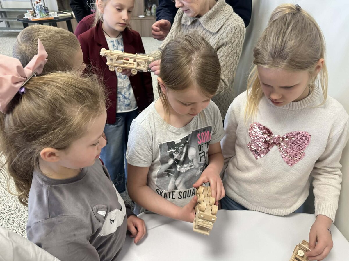Mažų medinių mašinėlių, traktorių, sunkvežimių ir kombainų modeliukai iš karto patraukė vaikų dėmesį. Meistras pristatė savo pomėgį, papasakojo, nuo ko viskas prasidėjo, kokią nostalgiją sukelia mašinėlių drožinėjimas ir kiek kruopštumo reikalauja šis darbas. Tai ne plastiku blizganti masinė produkcija, o šiluma spinduliuojantys, vaikystę primenantys rankų darbo žaislai.