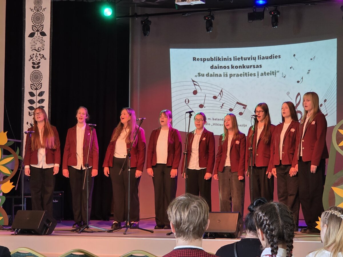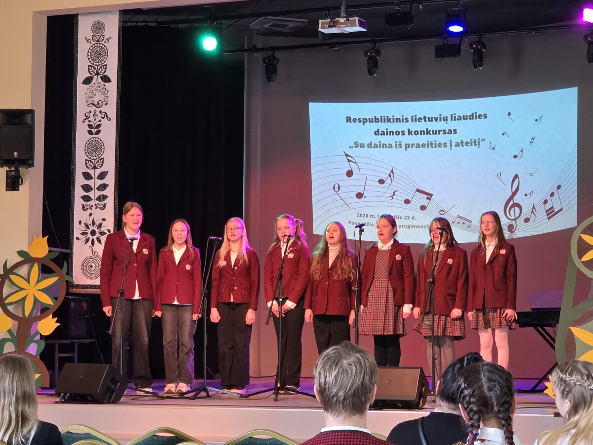 Tęsiame šios savaitės harmoningą muzikos kelionę. Šiandien Raguvos gimnazijos dainavimo studijos mergaičių ansamblis DAINOS SPARNAI ir Raguvos kultūros centro jaunimo folkloro ansamblis GERVELA (muzikos mokytoja Kotryna Juškaitė) dalyvavo Panevėžio VILTIES progimnazijos organizuotame Respublikiniame lietuvių liaudies dainų konkurse SU DAINA IŠ PRAEITIES Į ATEITĮ. Šauniai pasirodžiusios merginos yra laimingos ir nekantriai laukia garbingos komisijos įvertinimo.