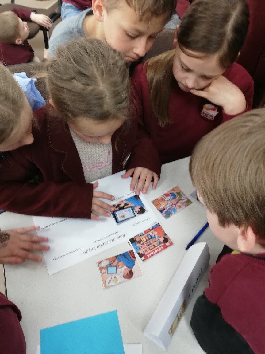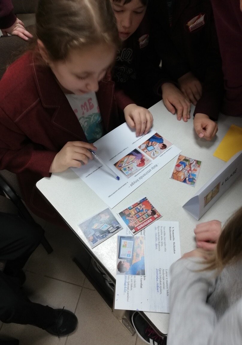 Šią dieną į knygas pažvelgėme ne tik skaitytojo, bet dailininko bei poeto akimis. Integruotose lietuvių kalbos ir dailės pamokose mokiniai iliustravo teksto ištraukas. Iš jų sudėliojo iliustruotą pasakojimą ar eilėraštį. Teatro menėje laukė kitos kūrybinės užduotys bei žaidimai: vaikai kūrė trūkstamas eilėraščių eilutes, žaidė „sugedusį pasakos telefoną“, sudėliojo „Knygos kelią“, bandė įminti Pepės mįsles ir galvosūkius.